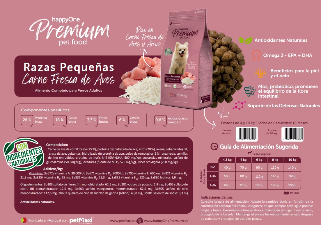 happyOne Premium Razas pequeñas carne fresca de Aves 4Kg.