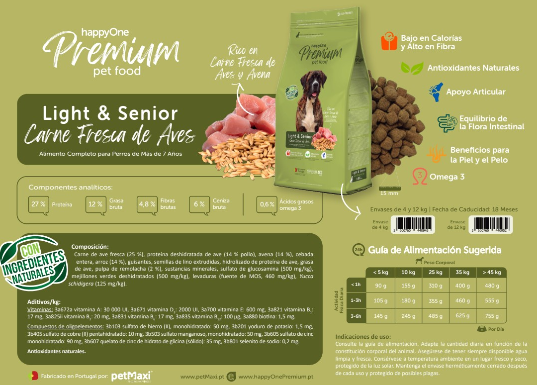 happyOne Premium Light & Senior - Carne Fresca 4Kg.