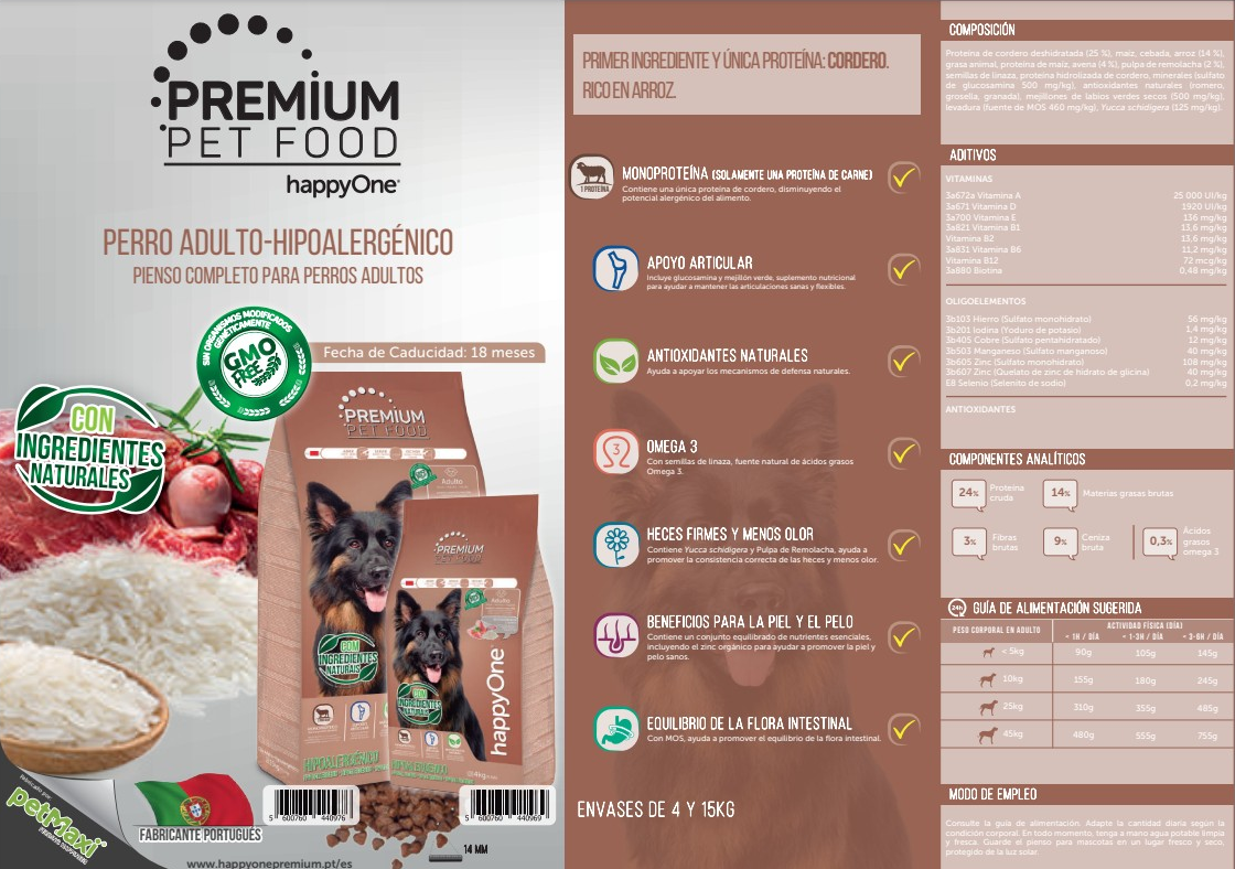 happyOne Premium Adulto Hipoalergénico Cordero 15Kg.